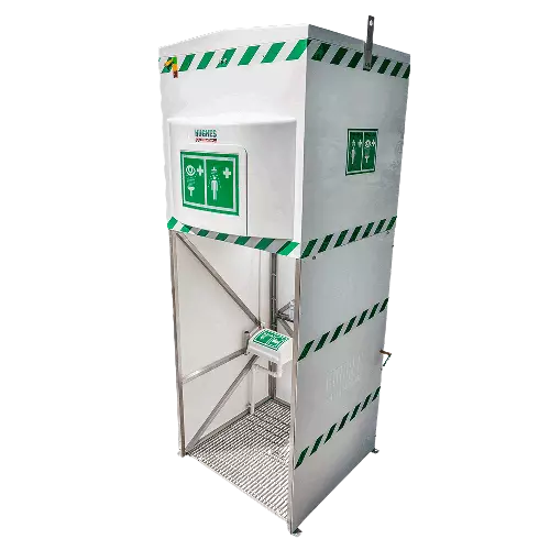 Las Duchas y Lava-Ojos de Emergencia , ofrecen instantáneamente agua como primera ayuda para la protección a las personas expuestas a la acción de fuego, ácidos, reactivos, productos petrolíferos, materiales radioactivos y otros contaminantes que podrían causar daños graves o irreparables.